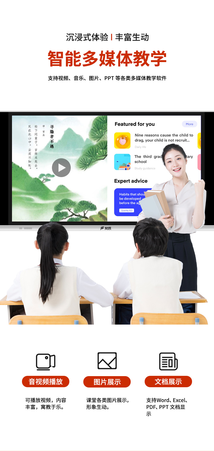 全国联保、支持定制、多点触控、无尘书写、高清显示、无线投屏、电子白板、4K防眩光、多种笔书写、双系统切换