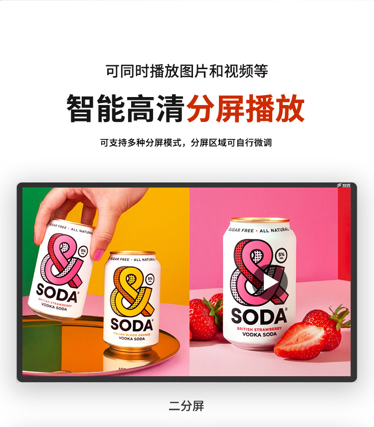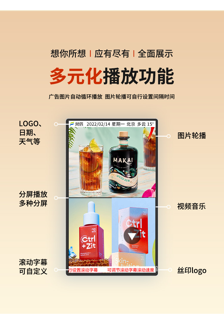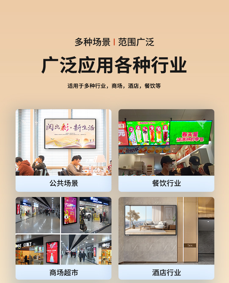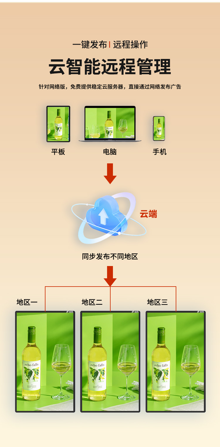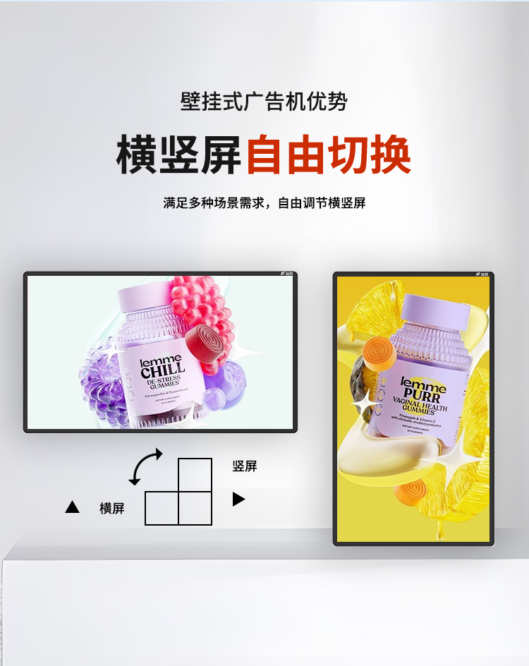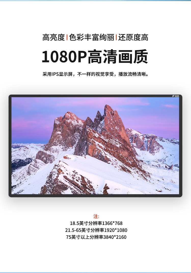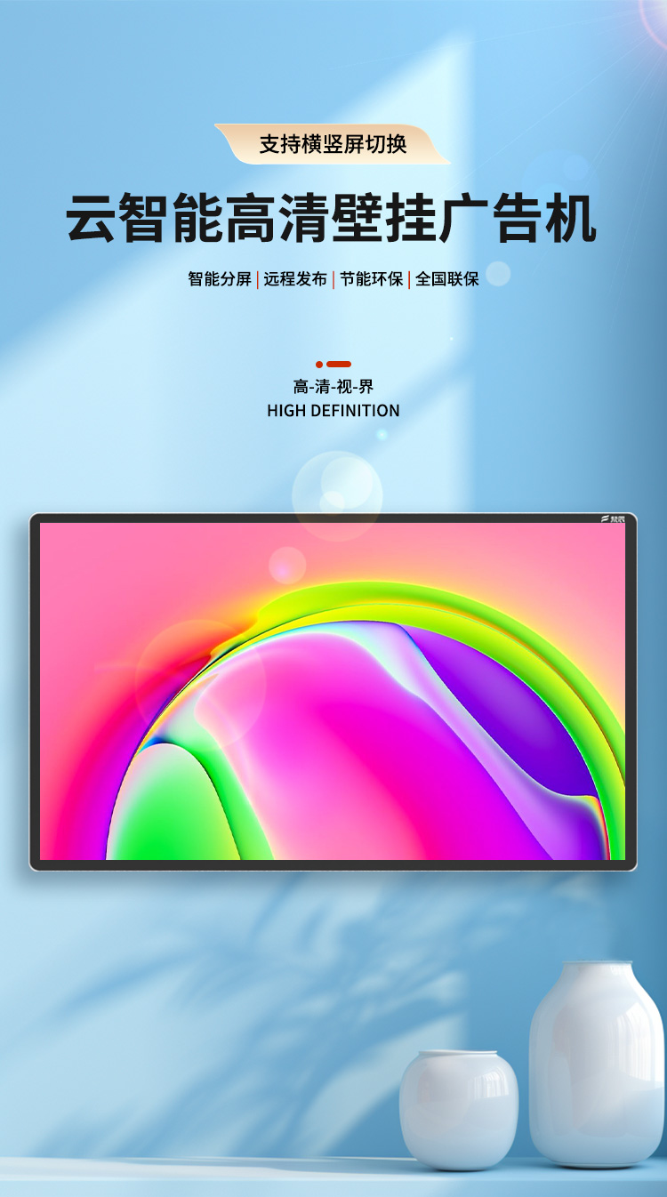 高清壁挂广告机、1080P高清画质、智能分屏、远程发布、节能环保、全国联保