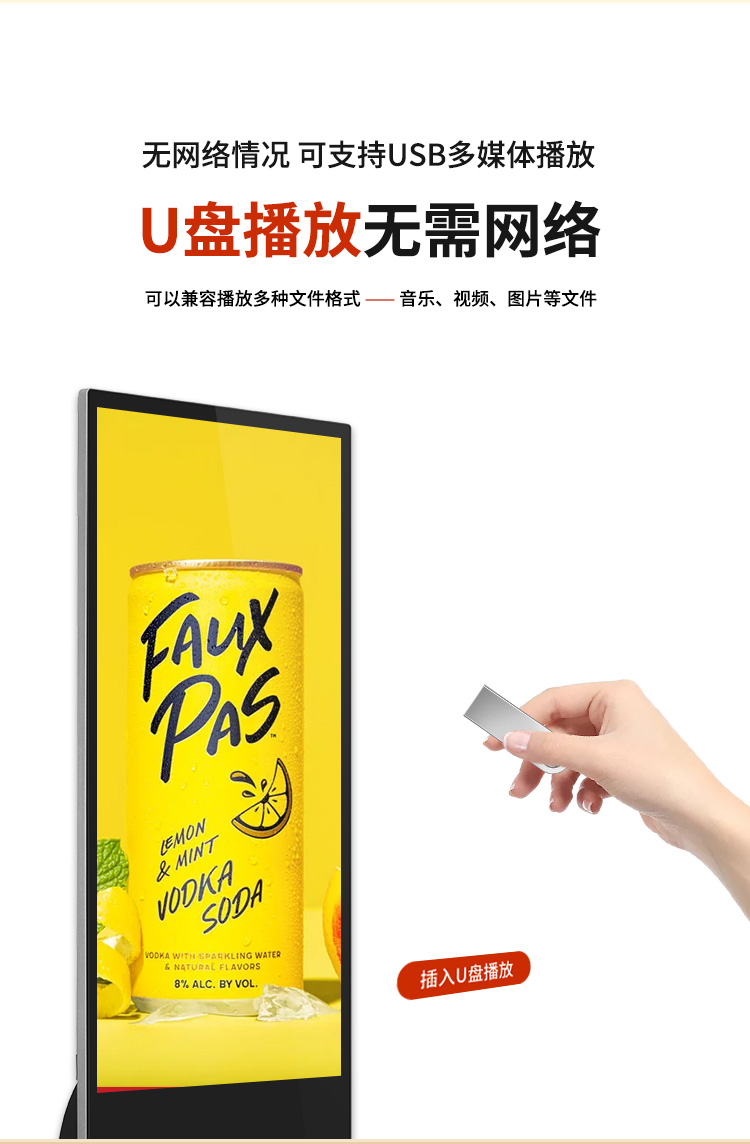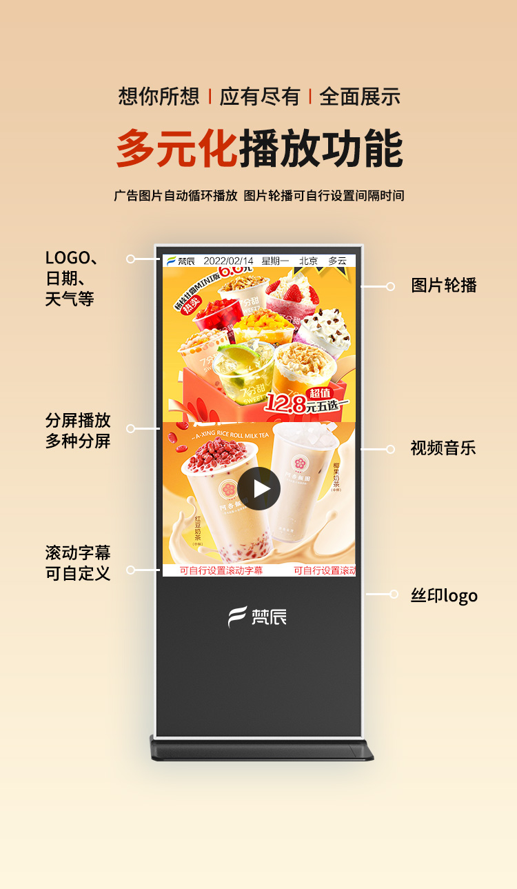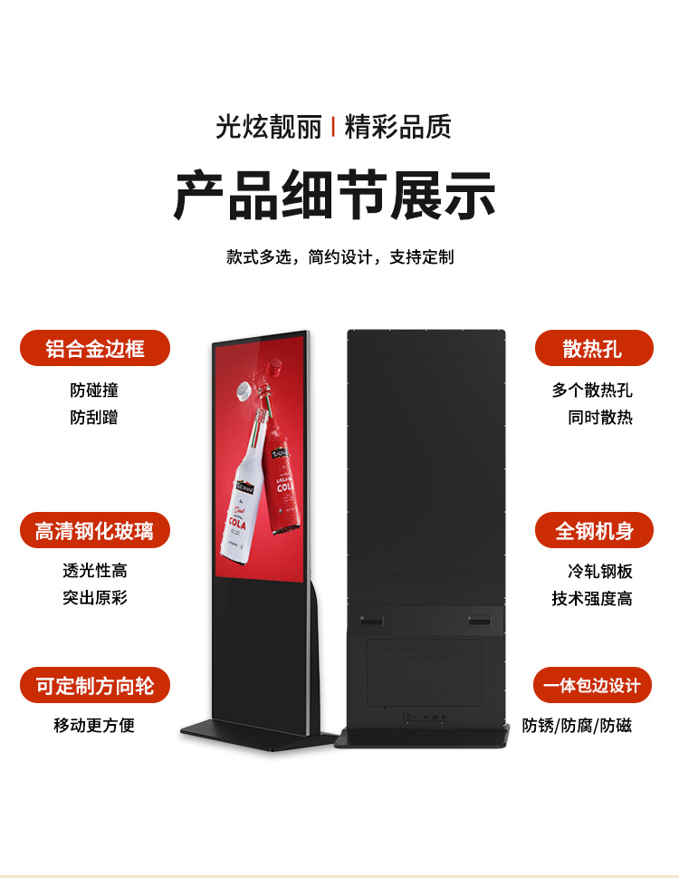 户外立式广告机、钢化玻璃、坚固耐用、内置音响、定时开关、远程管理、高清大屏、节能环保、全国联保