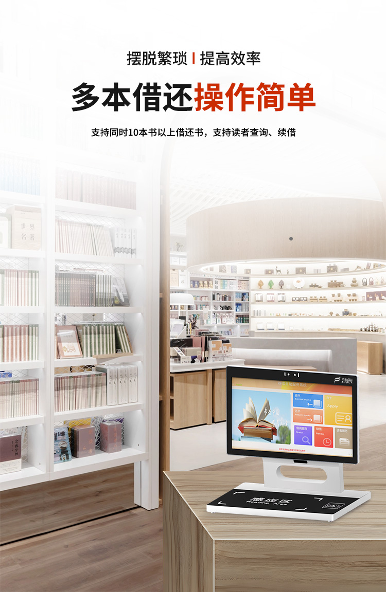 自助借还书机:借书还书、扫码读卡借书、借阅查询、密码修改、自助办证、全天候运行